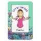 This fun female cartoon magnet is perfect for your door as you cruise or relax on a tropical vacation. The bright colors of coral and starfish is so fun! You can customize this magnet with your name and message