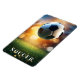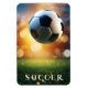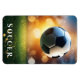 Este imán flexible se muestra con una impresión artística de una pelota de fútbol deportivo.