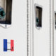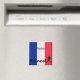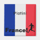 Un jugador de fútbol que usa el punto como una pelota con la bandera francesa en el fondo