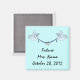 Regalos personalizados de Futura Sra. Magnet y favores personalizables de Futura Sra. y recuerdos de boda. Puede cambiar la tipografía y el color del texto en estas camisetas de boda personalizables, favores y regalos con palomas de boda y anillos de boda. Personalice con el nombre futuro de la novia y la fecha de su boda, simplemente haga clic en el botón personalizar. De "http://www.lesrubaweddings.com">Lesruba Weddings.