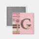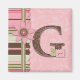 Monograma G con estampado de rayas y flores con flor de novedad y cinta con etiqueta chica.