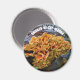 ¡Por el cazador de hongos! Imán redondo decorativo para el hogar u oficina que muestra la imagen de una seta de pollo de los bosques, una especie de hongo comestible. Seleccione su tamaño de imán.