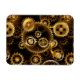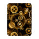 Sin soldadura, metalizado, latón, engranajes dorados sobre un fondo oscuro y oxidado. Estilo Steampunk.