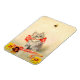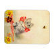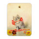 Magnet con la obra de arte Kitten de Meta Plückebaum con cinta roja (1876). Un gatito gris con rayas oscuras está bellamente adornado con una cinta roja. El gatito juega con una abeja. Las flores amarillas decoran el primer plano. ¡Un regalo maravilloso para los amantes del gato y del arte alemán!
