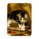 Magnet con la pintura al óleo de Henriëtte Ronner-Knip El joven artista (1821-1909). Un gatito blanco y negro juega con un juego de pintura y dos pinceles. Un regalo adorable para los amantes del gato y del romanticismo.