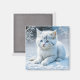 Bonito generó la escena del invierno con un dulce gatito blanco y esponjoso jugando en la nieve.