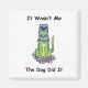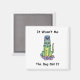 imán cuadrado de 2 pulgadas con un ilustracion que muestra un gato de aspecto gruñón sentado con una taza de plástico pegado en su cabeza como un casco. Es una postura humorística, un poco sarcástica sobre los gatos, torpeza, y esos momentos "por supuesto que esto me pasaría a mí".