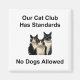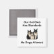 imán cuadrado de 2 pulgadas con "Nuestro club de gatos tiene estándares - no se permiten perros" imagen que es juguetona y humorística. Es un diseño alegre, perfecto para los amantes de los gatos que disfrutan un poco de humor sarcástico, "gatos gobiernan, perros babosos".