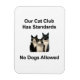 Magnet de 3 pulgadas x 4 pulgadas con "Nuestro club de gatos tiene estándares - no se permiten perros" imagen que es divertida y humorística. Es un diseño alegre, perfecto para los amantes de los gatos que disfrutan un poco de humor sarcástico, "gatos gobiernan, perros babosos".