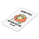 imán de 3 pulgadas x 4 pulgadas con un ilustracion personalizado lúdico de un gato que descansa perezosamente en una gran silla de bolsos. Capta un humor gracioso de "día perezoso" —como un gato que se permite refrigerios y no hace absolutamente nada productivo. Da lugar a una sensación humorística y relativa de estar descansando y arremetiendo contra el exceso.