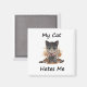 Este imán cuadrado de 2 pulgadas muestra un ilustracion oscuro y gracioso de un gato enfurecido, jugando con el estereotipo clásico de que los gatos están distantes, fríos o incluso abiertamente hostiles hacia sus dueños. Capta el humor de los gatos como pequeños tiranos que gobiernan la casa y toleran a los humanos solamente en sus propios términos.