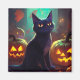 Imán Gato de Halloween Tuxedo con calabazas aterradoras