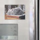 Esta baldosa de cerámica de gato durmiendo presenta la obra de arte original, "La marca de libro" que representa a un gato gris durmiendo sobre un libro antiguo en una librería o biblioteca oscura. Esta baldosa temática de gato está disponible en dos tamaños diferentes y se puede utilizar como salvamanteles o como un excelente azulejo de acento perfecto para los amantes de los gatos. Derechos de autor de la obra: Dominic A. White.