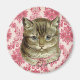 Pequeño y lindo gatito de tabby cortado con una cinta rosada.
