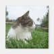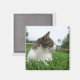 Los imanes de refrigerador para gatos hacen excelentes regalos o rellenos para los amantes del gato. Este imán muestra una foto de un gato enlosado, con el pecho blanco, relajándose en el césped. Fotografía © Lisa Marie Robinson. Todos Los Derechos Reservados.