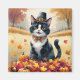 Imán Gato De Tuxedo En Otoño Deja El Arte De Acción De