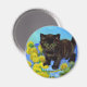 ¡Magnet con un gato al estilo Van Gogh con girasoles! Un gatito negro bonito cuidadosamente posa con flores amarillas. ¡Un regalo fabuloso para los amantes del gato y para los coleccionistas holandeses de arte!