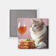 Imán Gato gris puro con lasagna y vidrio de vino