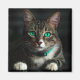 Imán Gato gris y blanco con ojos azules y cuello coinci