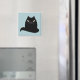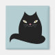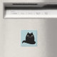 Ilustracion de un gato negro con una nariz rosada y su cola envuelta alrededor de sí mismo sobre un color de fondo azul de huevo de pato que se puede cambiar.