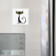 Este diseño de imán cuadrado personalizado presenta un gato negro "atómico" retro de mediados de siglo, con grandes ojos amarillos y una cola rizada. Puede cambiar fácilmente la ortografía del texto; estilo de fuente, color y tamaño con el botón Personalizar zazzle.