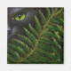 HERMOSO GATO NEGRO CON OJOS VERDES, DETRÁS DE LOS FERNOS.