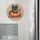 Este encantador diseño cuenta con un gato negro de ojos anchos enclavado sobre una calabaza texturada, rodeado de hojas caídas vibrantes, pequeñas calabazas y flores de otoño cálidas. La piel del gato está intacta con un suave patrón de edredón, que incorpora una deliciosa mezcla de colores de cosecha como naranja quemado, mostaza, verde azulado profundo y rojo rústico. Los detalles de costura intrincados y el estilo de edredón geométrico aportan un encanto artesanal y de granja a la pieza. Con su acogedor tema de temporada y sus adorables vigas de madera, este diseño es una perfecta declaración visual para los amantes del otoño, los aficionados al turismo artesanal o cualquier persona que se atreva a tomar imágenes de otoño con un toque de fantasía. El juego de equilibrio entre lo rústico y lo lindo le da un fuerte atractivo a la decoración de temporada o a las regalos temáticos. La IA generó obras de arte.