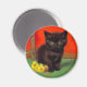 ¡Magnet con un gato negro al estilo Van Gogh! Este bonito gatito se encuentra junto a los girasoles, sobre un suelo verde y contra una pared roja. ¡Un regalo lindo para los amantes del gato y los coleccionistas holandeses de arte!