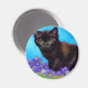 ¡Magnet con un gato y flores al estilo Van Gogh! Un gato negro posa con flores moradas. ¡Un regalo perfecto para los amantes del gato y los coleccionistas holandeses de arte!