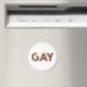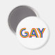 Esta obra de arte muestra la palabra Gay en una fuente de color arcoiris.