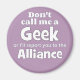 No me llames Geek o te informaré a la Alianza. Que la gente a tu alrededor sepa en qué estás y que estás listo para defenderlo.