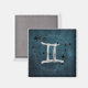 Una constelación de estrellas negras flotan sobre el símbolo astrológico de Gemini los gemelos, rodeados por un cuadro de astro plateado sobre un misterioso fondo azul verde azulado. El accesorio perfecto para alguien nacido bajo el signo del aire de Gemini - del 21 de mayo al 20 de junio.