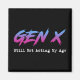 Gen X - Still Not Acting My Age. This cool retro Gen X accessory is a great gift for Generation X a woman, man, husband, wife, boyfriend, girlfriend, father, mother, dad or mom who grew up in the 1970s, 1980s or 1990s. This vintage design is perfect for Gen Xers who remember the 70s, 80s and 90s, and who have nostalgia for icons, movies, music, bands, and tv shows from the seventies, eighties and nineties era.