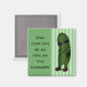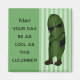 Imanes divertidos para la gente genial en tu vida. A la derecha del imán hay un pepino verde que lleva gafas de sol oscuras, un chaleco negro y botas marrones. Está de pie con los brazos cruzados y una sonrisa descarada. En el lado izquierdo, en letras negras, dice 'Que tu día sea tan genial como este pepino'. El fondo es verde con rayas verde pálido.