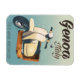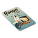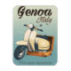 Génova Italia Para un afiche de vacaciones vintage - Scooter saliendo de un poster viajero de vacaciones maletín. "Para unas vacaciones" - Por una vacancia.