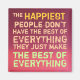 Diseño de Elizabeth Medina. Copyright. LAS PERSONAS MÁS FELICES NO TIENEN LO MEJOR DE TODO, SÓLO HACEN LO MEJOR DE TODO. Resumen, Gossip, filosofía. Añade tu propia imagen y/o palabras. Cambiar el fondo a cualquier color. ¡Regístrate como regalo a ti mismo o a un ser querido! ¡Ideal para eventos personales, familiares, publicidad, conciencia humanitaria, conciencia ambiental, promociones o eventos de negocios! Excelente para REVENTA. Cuanto más pidas, más ahorras dinero. Copyright. Coincidir con otros elementos. **********Servicio al cliente*********Si tiene alguna pregunta o dificultad con un pedido, por favor llame al TEL: 1-888-892-9953 en Estados Unidos o (408) 983-2800 International. Horas: de 8AM a 6PM PST (de 11am a 9pm EST), de lunes a viernes. $$$$$$$$COMISIÓN$$$$$$$$ Puede realizar una comisión del 15% si vincula mi tienda y/o cualquier producto a su tienda, sitio web personal, facebook, etc. ¡Muy fácil y GRATIS! Comuníquese con el Servicio al cliente. PS: PUEDES AGREGAR CUALQUIER PARTE DE MI ARTE EN TU FACEBOOK O TWITTER O EN CUALQUIER OTRO LUGAR SIEMPRE Y CUANDO DECLARES QUE ES DE GalleriaofArt.com! (Aún mejor si vinculan y ganan dinero $$) ¡MUCHAS GRACIAS!