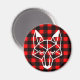 Imán de nevera rústica con un zorro geométrico blanco moderno sobre un patrón de manchas de búfalo negro y rojo. ¡Añada una cálida diversión rústica a su refrigerador o taquilla!