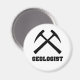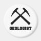 Símbolo de martillos rocosos cruzados con "geólogo" en letras de estilo colegiado.