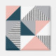 Ilustracion de diseño geométrico colorido de estilo escandinavo con colores gris, rosa, azul marino, blanco y negro
