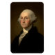 George Washington, el primer presidente norteamericano de Stuart. El 30 de abril de 1789, George Washington, de pie en el balcón del Federal Hall de Wall Street en Nueva York, prestó juramento como primer Presidente de los Estados Unidos. "Como la primera de todas las cosas, en nuestra situación serviremos para establecer un Precedente", escribió James Madison, "se me antoja fervientemente que estos precedentes se fijen en principios reales". — Nacido en 1732 en una familia de plantadores de Virginia, aprendió la moral, los modales y el cuerpo de conocimiento que requiere un caballero del siglo XVIII de Virginia. — Persiguió dos intereses entrelazados: las artes militares y la expansión occidental. A los 16 años ayudó a inspeccionar las tierras de Shenandoah para Thomas, Lord Fairfax. Encargó a un teniente coronel en 1754, luchó contra las primeras escaramuzas de lo que se convirtió en la guerra francesa e india. Al año siguiente, como ayudante del general Edward Braddock, se libró de las heridas, aunque cuatro balas le arrancaron el abrigo y dos caballos le dispararon. — Desde 1759 hasta el estallido de la Revolución Americana, Washington administró sus tierras alrededor del Monte Vernon y sirvió en la Casa de Burgesses de Virginia. Casado con una viuda, Martha Dandridge Custis, se dedicó a una vida ocupada y feliz. Pero al igual que sus compañeros de planificación, Washington se sintió explotado por los comerciantes británicos y obstaculizado por las regulaciones británicas. A medida que la disputa con la madre patria se agudizó, él expresó de manera moderada pero firme su resistencia a las restricciones. — Cuando el Segundo Congreso Continental se reunió en Filadelfia en mayo de 1775, Washington, uno de los delegados de Virginia, fue elegido Comandante en Jefe del Ejército Continental. El 3 de julio de 1775, en Cambridge, Massachusetts, tomó el mando de sus tropas mal entrenadas y se embarcó en una guerra que debía durar seis años agotadores. — Se dio cuenta temprano que la mejor estrategia era acosar a los británicos. Informó al Congreso, "en todas las ocasiones debemos evitar una acción general, o ponerle cualquier cosa al Risque, a menos que nos obligue por una necesidad, a la que nunca deberíamos atraer". Las batallas posteriores lo vieron caer de nuevo lentamente, y luego golpear inesperadamente. Finalmente en 1781, con la ayuda de aliados franceses, forzó la rendición de Cornwallis en Yorktown. — Washington deseaba retirarse a sus campos en el Monte Vernon. Pero pronto se dio cuenta de que la Nación según sus Artículos de la Confederación no estaba funcionando bien, así que se convirtió en el principal impulsor de los pasos que llevaron a la Convención Constitucional en Filadelfia en 1787. Cuando se ratificó la nueva Constitución, el Colegio Electoral eligió por unanimidad Presidente de Washington. — No infringió las facultades de formulación de políticas que, a su juicio, la Constitución concedió al Congreso. Pero la determinación de la política exterior se convirtió predominantemente en una preocupación presidencial. Cuando la Revolución Francesa condujo a una gran guerra entre Francia e Inglaterra, Washington se negó a aceptar por completo las recomendaciones de su Secretario de Estado, Thomas Jefferson, que era pro-francés, o de su Secretario del Tesoro, Alexander Hamilton, que era pro-británico. Más bien, insistió en un rumbo neutral hasta que Estados Unidos pudiera fortalecerse. — Para su decepción, dos fiestas se estaban desarrollando al final de su primer mandato. Cansado de la política, sintiéndose viejo, se retiró al final de su segundo. En su discurso de despedida, instó a sus compatriotas a que renunciaran al espíritu fiesta excesivo y a las distinciones geográficas. En asuntos exteriores, advirtió contra las alianzas de largo plazo. — Washington disfrutó de menos de tres años de retiro en el Monte Vernon, ya que murió de una infección de garganta el 14 de diciembre de 1799. Durante meses, la Nación lo lloró.
