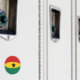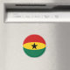 La bandera de Ghana se ha ajustado cuidadosamente a la forma circular de este imán. Una manera decorativa de promover la cultura ghanesa.