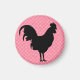 Gingham Rooster Magnet, con una silueta de gallo negro sobre fondo de gingham rojo.