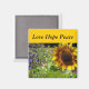 Un imán de girasol brillante y alegre con un mensaje inspirador de amor, esperanza y paz. Compártelo con un amigo.