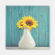 Girasoles en un jarrón, contra una valla de madera. 100% Personalizable. Haga clic en el botón PERSONALIZAR para agregar, mover, eliminar, cambiar el tamaño o cambiar cualquiera de las fuentes o gráficos.