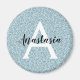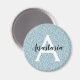 El purpurina de plata de color azul grisáceo y azul glam destella el nombre del monograma y el imán inicial. Personalice con su nombre personalizado en un guión negro elegante y su monograma inicial en blanco. Puede cambiar el color del texto y el estilo y el tamaño del tipo de letra mediante la opción personalizar.