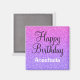 Magnet de cumpleaños feliz con un oscuro purpurina púrpura brillante y una elegante escritura en blanco y negro. Puede agregar fácilmente el nombre de su elección y cambiar el color y la fuente del nombre utilizando la opción personalizar.