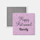 Imán de retiro feliz de glam personalizado con un fondo brillante purpurina morado y una elegante escritura negra. Puede agregar fácilmente el nombre de su elección y cambiar el color y la fuente del nombre utilizando la opción personalizar.