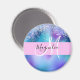 El purpurina holográfico de la sirena de Glam esparce el nombre del monograma y el imán inicial. Su nombre y monograma personalizados están escritos en un guión elegante con letras a mano con un fondo rosa claro. Puede cambiar el color del texto y el estilo y el tamaño del tipo de letra mediante la opción personalizar.