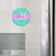 El purpurina glamuroso y grisáceo rosa y turquesa esparce el nombre del monograma blanco y el imán inicial. Su nombre personalizado y su monograma están escritos en un guión elegante con letras a mano con un fondo rosado. Puede cambiar el color del texto y el estilo y el tamaño del tipo de letra mediante la opción personalizar. ¡Un regalo perfecto de cumpleaños o Navidades!