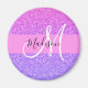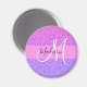 El purpurina de la sirena de color crujiente y glam morado, lila y rosa esparce el nombre del monograma gradiente y el imán inicial. Su nombre personalizado y su monograma están escritos en un guión elegante con letras a mano con un fondo rosado. ¡Un regalo perfecto de cumpleaños o Navidades!